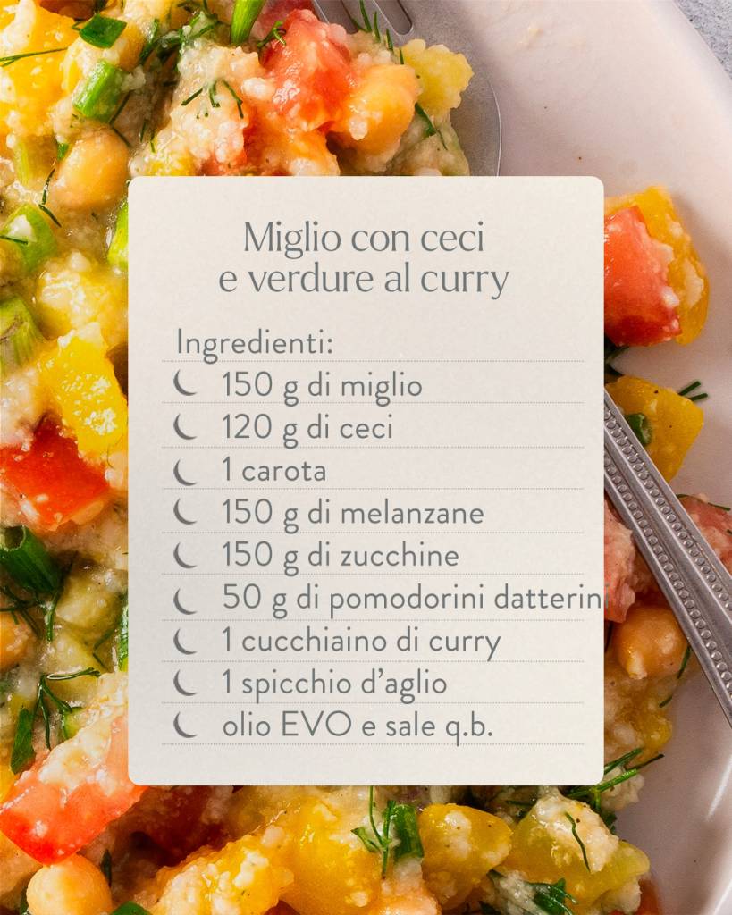 Perché è amica della pelle (e del buon sonno): i legumi e semi forniscono proteine vegetali e triptofano; la frutta secca e verdure apportano magnesio; il riso integrale e le verdure completano il pasto con carboidrati complessi e micronutrienti, facilitando l’assorbimento del triptofano.